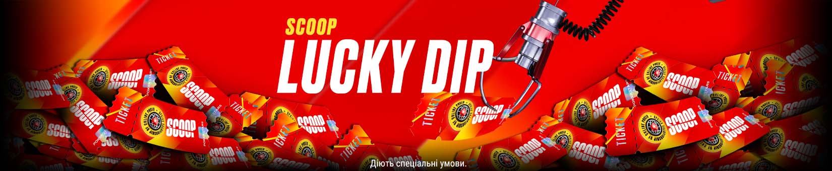 У таблицях лідерів SCOOP Lucky Dip враховуються виключно турніри SCOOP із грошовим бай-іном, як зазначено далі. Участь в одному турнірі SCOOP вважатиметься спробою. Гравці можуть робити необмежену кількість спроб щодня.